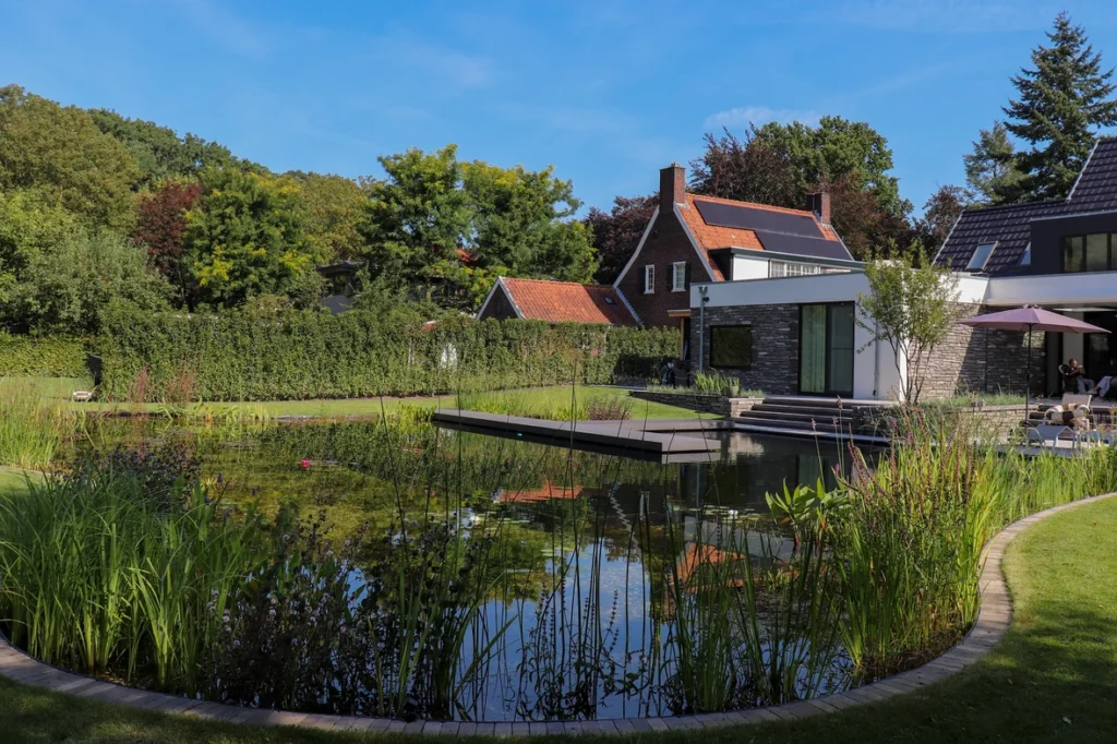 De nadrukkelijke wens van de klant was een tuin die volledig integreert met de natuur in de omgeving. Het creëren van een plek van inspiratie en wellness midden in de natuur. Dat kan met een natuurlijke zwemvijver op maat.
