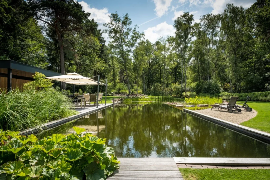 Erg trots zijn wij op deze indrukwekkende zwemvijver in een bosrijke villatuin in Bilthoven. De Natuurlijke Zwemvijver is uitgeroepen tot Zwemvijver van het jaar 2019!